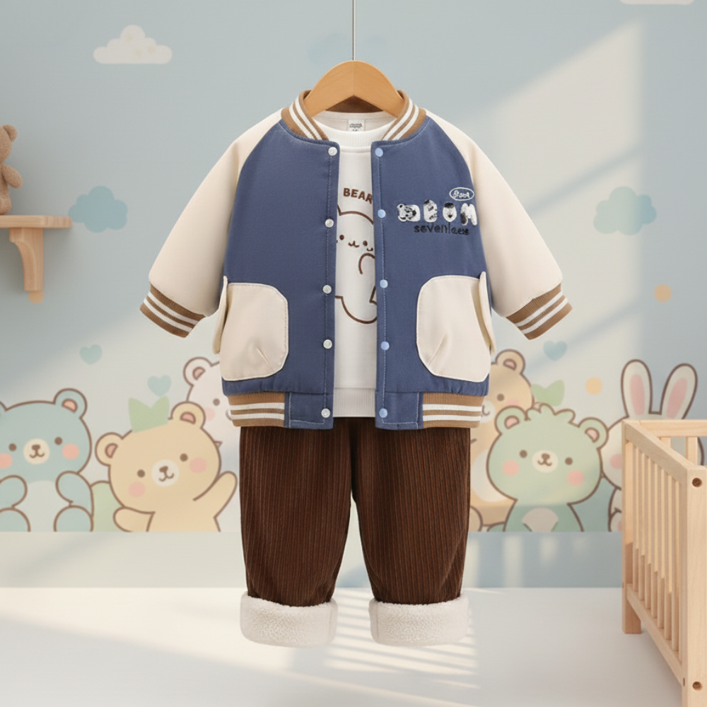 Imported Baby Kids Three-Piece Bear Pocket Winter Dress for 6 Months – 2 Years